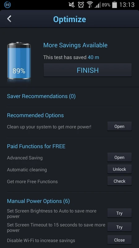 DU Battery Saver prolonge la durée de vie de la batterie dans les modes prédéfinis et les rapports détaillés.